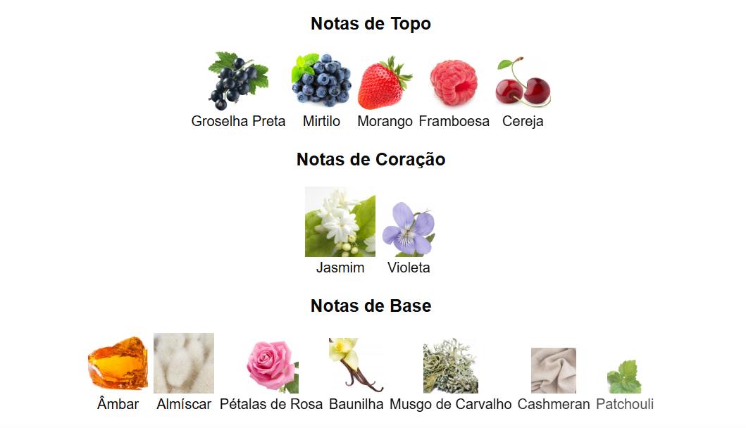 Busca um perfume Feminino radiante, viciante e extremamente luxuoso, que combina uma explosão de frutas vermelhas suculentas com um coração floral delicado e um fundo quente de baunilha e âmbar?