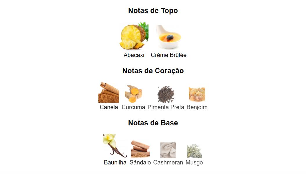 Busca um perfume exótico, gourmand e extremamente luxuoso, que combina a doçura tropical do abacaxi com a cremosidade do Crème Brûlée e o calor das especiarias finas?