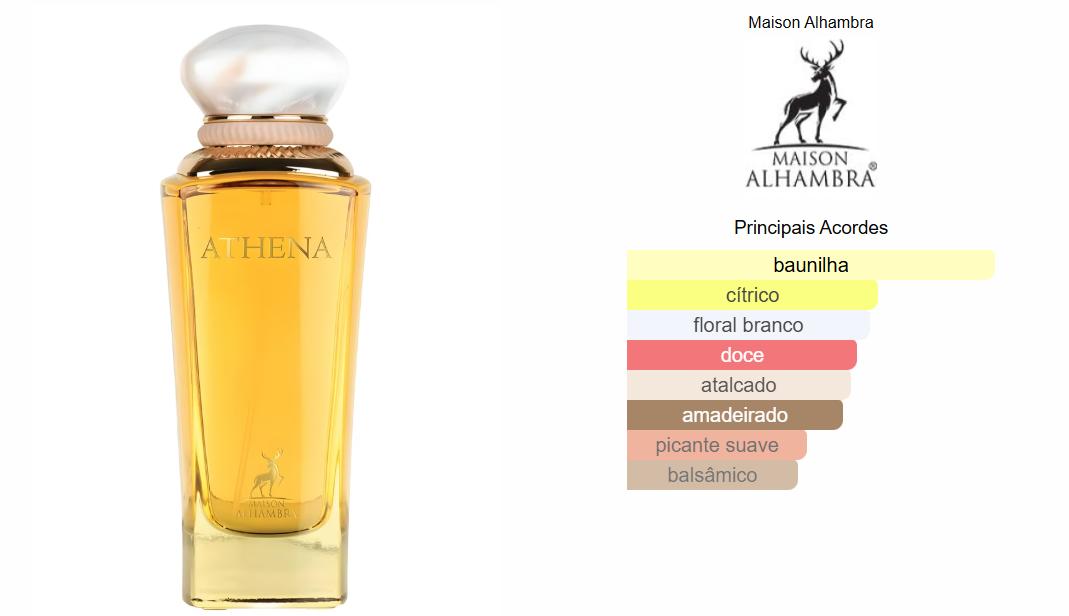 Inspiração Olfativa: O Athena é amplamente reconhecido por seguir a linha olfativa do deslumbrante e moderno Goddess (Burberry). Ele entrega aquela experiência sensorial única e viciante da baunilha em várias facetas, proporcionando uma aura de "deusa contemporânea" com a performance impecável característica da Maison Alhambra.