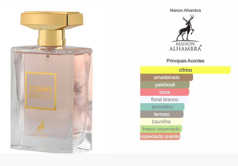 O Como Moiselle é uma fragrância Oriental Floral que equilibra o frescor cítrico com a profundidade do Patchouli e a delicadeza das rosas, sendo um dos perfumes mais elogiados e clássicos da perfumaria árabe.