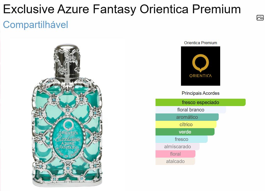 Inspiração Olfativa: O Azure Fantasy é amplamente reconhecido por seguir a linha olfativa do prestigiado e desejado Imagination (Louis Vuitton). Ele entrega aquela experiência sensorial de um "chá cítrico" revitalizante e luxuoso, unindo notas especiadas frias com um fundo mineral de altíssima performance, característica da linha Exclusive da Orientica.